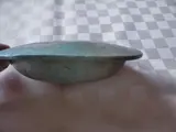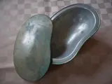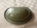 Zeer mooie oude schaal, blik van messing, met goed sluitend deksel, niervormig, halfrond.