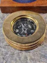 Messing kompas met houten koffer