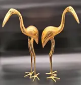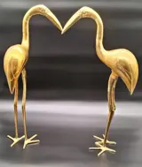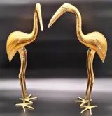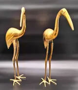 Prachtige set van twee XL messing reigers. Deze sierlijke vogels met hun ranke poten en lange snavels staan in een mooie pose te wachten om nog meer glans te geven aan je interieur, een geweldige blikvanger passend binnen vele interieur stijlen!