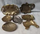 7 kommen/ gerechten voor verzamelaars. Van alle leeftijden. 6 messing, 1 wit metaal. Stijlen zijn Jugendstil, art nouveau.