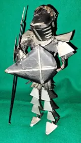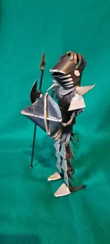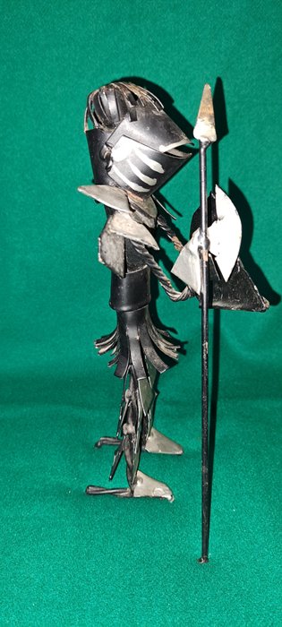 Middeleeuwse krijger handgemaakt in ijzer, handgemaakt, met pantser, schild en speer.
