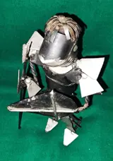 De ambachtelijke beeldhouwer met een geduldig werk van knippen, slijpen, beitels en burijnen, brengt deze figuur tot leven die bestaat uit vele min of meer kleine stukjes die het pantser omlijnen.