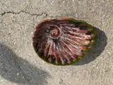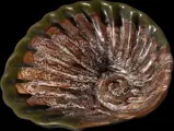 Groot middelpunt in polychroom keramiek in de vorm van een schelp uit het midden van de vorige eeuw.
