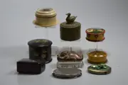 Een mooie verzameling van 9 verschillende vintage , antieke sierraad doosjes / poederdoosjes.