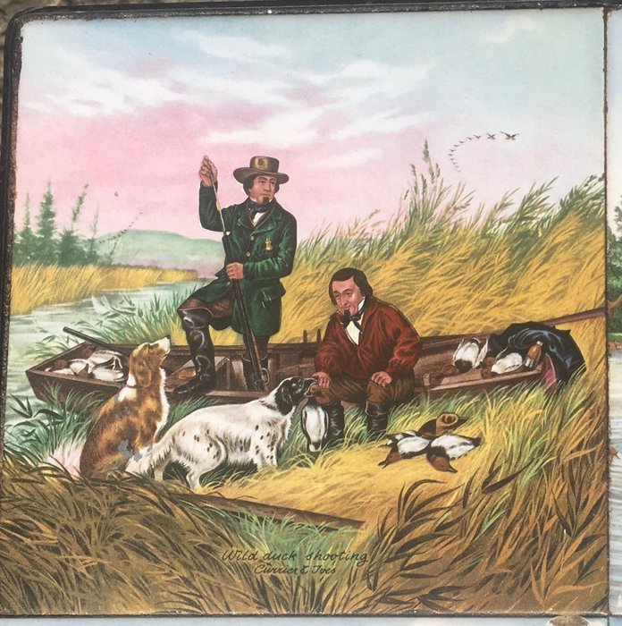 deze bijzondere tegels met afbeeldingen "jacht" van de firma Currier & Ives.