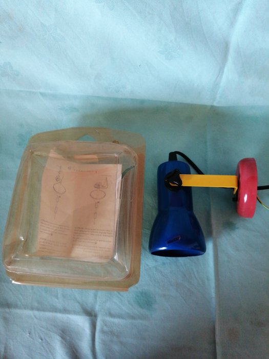 Schitterende wandlamp in pop-artstijl in Memphis van de firma GS in Senago, Milaan, perfect nieuw, nooit gebruikt, ontbrekende doos maar compleet met blister met label en montage-instructies, perfecte emailkleuren, past op E27 lamp