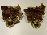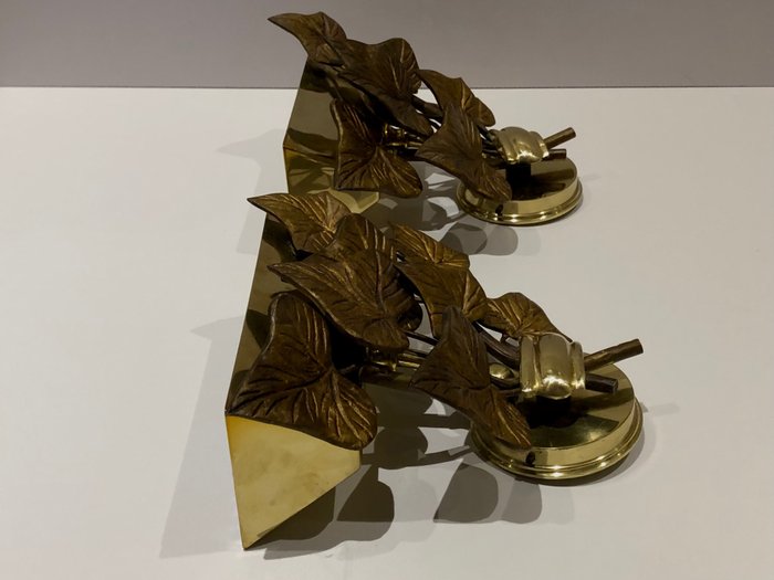 Zeldzame en elegante wandlampen met de massief koperen voet die het lichaam van de lampen vormt, gedecoreerd in het voorste gedeelte in gepolijst brons in reliëf en gevormd om de bladeren te vormen. De lampen zijn halogeen, ze zijn ook compatibel met leds.