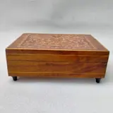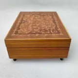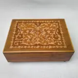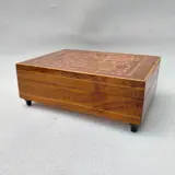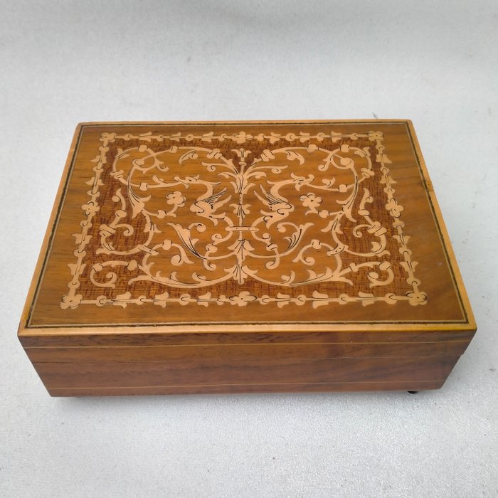Fraaie houten muziekdoos ingelegd met diverse houtsoorten.