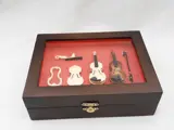 met deksel, waarin verwerkt een miniatuur viool , in verschillende stadia van aanbouw