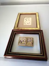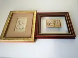 Zeer interessant kavel bestaande uit 2 schilderijen met sculpturen in 925 zilver en bladgoud