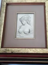 Kader met sculptuur in zilverplaat en bladgoud verzameld in fijn glas met fijne houten lijst.