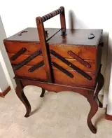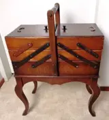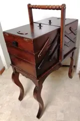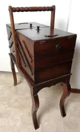 De box is geplaatst op vier fraai gewelfde pootjes. Het onderste vak meet 48 x 24 cm.Hoog 9.5 cm. De vier bovenste vakjes meten 24 x 24 cm. Hoog 6.5 cm.
