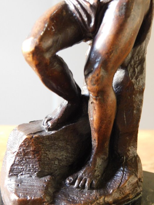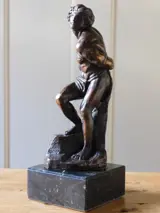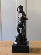 Dit beeldje, de opstandige slaaf naar het origineel van Michelangelo van 1513 - 1515, staat op een marmeren sokkel is ca. 18 cm hoog. Het beeld zelf is van brons en is in zeer goede staat.