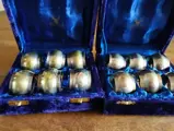 12 verzilverde servetringen in orginele bewaarbox.