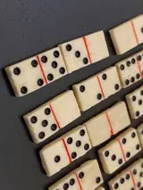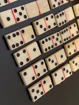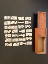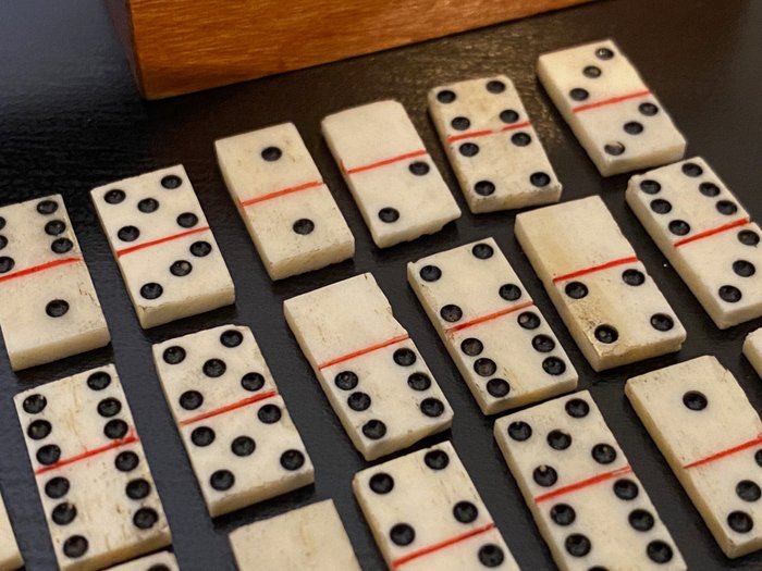 Complete set van 28 miniatuur dominostenen, gemaakt door krijgsgevangenen tijdens de napoleontische oorlogen.