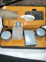 Te koop een reisset uit de jaren 50 bestaande uit een tas met daarin
