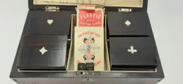 Antieke Quadrille originele fiches kist.