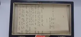 In het hoofddeksel zit een geschreven uitleg in oud Hollands handschrift geschreven.