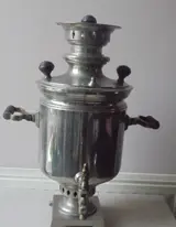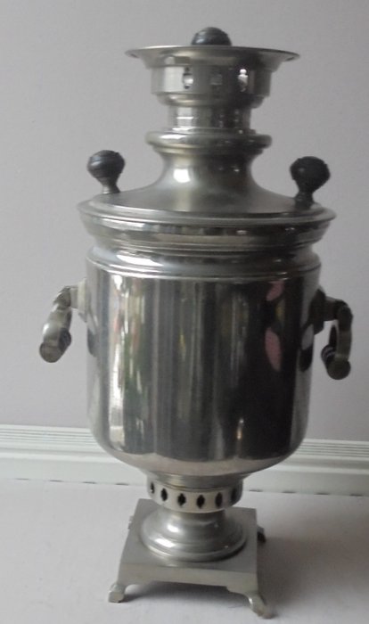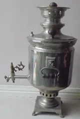 Een zeer romantische Turkse Samovar werkzaam op houtskool, het waterreservoir heeft een inhoud van 5 liter. Echt een aanwinst voor de liefhebber van het theedrinken op het midden- Oosten wijze, De watertank heeft kalkaanslag heelaas, maar dat valt te reinigen. Deze Brocante Turkse Samovar is dus nog te gebruiken. Wordt kostenloos verzonden.