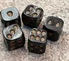 Nieuwsgierig Memento Mori lot van 5 dobbelstenen in been en hout met uitgesneden schedels
