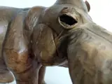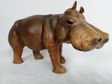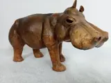 Erg mooi en decoratief nijlpaard. Het dier is gemaakt van leder en heeft glazen ogen. Het weegt 500g, is 15cm hoog, 28cm breed en 10cm diep. Het leren dier dateert waarschijnlijk van het begin van de vorige eeuw (zeker is dit niet!). In die tijd waren dit soort dieren erg populair.