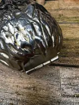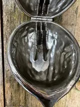 Vintage Figurale Notenkraker Walnoot Vorm Zilverkleurig Metaal.