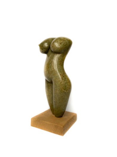 Mooie torso van serpentine groene steen. Tonderai (1977) is een succesvolle beeldhouwer uit Zimbabwe. Zijn werk is te zien op tentoonstellingen over de hele wereld.