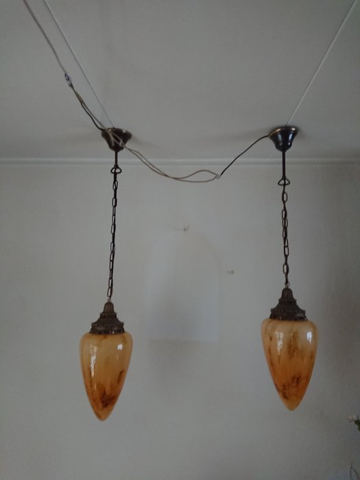 onbekend - onbekend - Lamp (2) - Art Deco - glas /koper