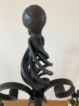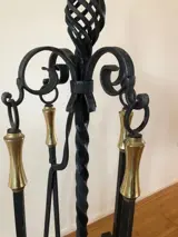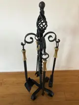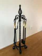 Mooi en bijzonder, 4 delig handgemaakt zwaar smeedijzeren open haard stel.