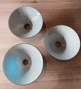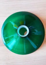 Waarschijnlijk met de hand gemaakt omdat ze niet dezelfde groene tint hebben. (moeilijk te fotograferen reflecterende items). De wit reflecterende onderkant zit natuurlijk gelijk tussen alle 3 de lampen.