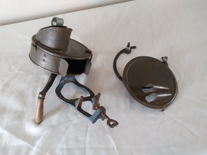 Nieuwsgierige aardappelmolen in plaatstaal en gietijzer.