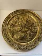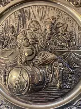 Messing plaat met afbeelding Musketiers aan gelagtafel
