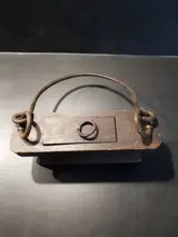 Deze aangeboden houten box is uit één blok hout vervaardigd met zware metalen ophanging