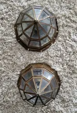 Bijvoorbeeld een paar lichtkandelaars met gouden messing structuur en kristallen, allemaal in perfecte staat, voor E27 ingangslamp.