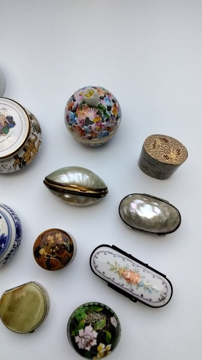 pillendoosjes, juwelendoosjes (19) - porselein, zilver, parelmoer, been, mozaïek