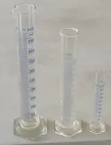 Set van 3 maatcilinders, blauw opschrift.