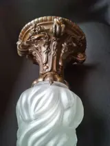 Fraaie vroege art-nouveau plafondlamp met een hoogte van 38cm en een diameter van 20cm. Voor uw gemak heb ik de oude bajonet fitting vervangen voor een Europese E14 fitting en het oude stroomdraad is vervangen.