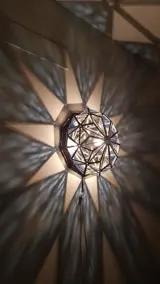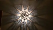Grenadine-type glazen lamp met 70 blauwe en transparante kristallen die een heel mooi stereffect geven, de kristallen zijn individueel met de hand gezet in metaal en later aan elkaar gelast, hij kan gebruikt worden op plafonds of muren, de lamp is uit het jaar 2003 Hoewel het is nooit gebruikt, veel is gekocht van een fabriek die stopte met de productie ervan vanwege pensionering van de eigenaar.