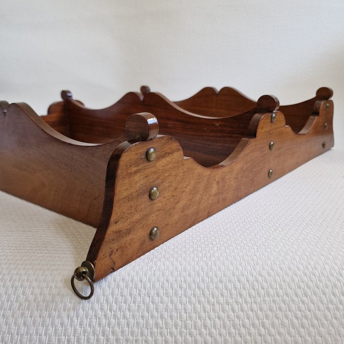 Mahoniehouten wandplank, met haken om te bevestigen, in uitstekende staat.