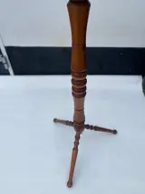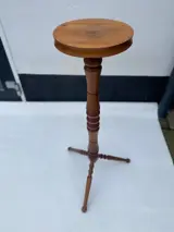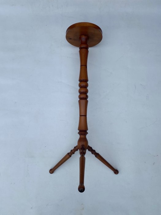 Dit is een heel mooie gedraaide houten plantenstandaard op een statief met drie poten. Zeer vergelijkbaar met plantenstandaards gemaakt in Denemarken. Het heeft een gerstedraaibasis die op de benen wordt herhaald. Het heeft een klassieke en langdurige aantrekkingskracht. Goed gemaakt en goed verzorgd. Het meet 87H bij 43 breed op een basis van 23 cm.