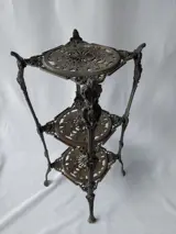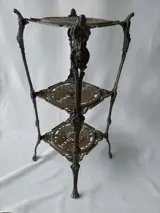 Een bijzondere etagère of plantentafel met een fantastisch gebruik/ouderdom patina. Bewust niet gepoetst/gepolijst om deze staat te behouden.