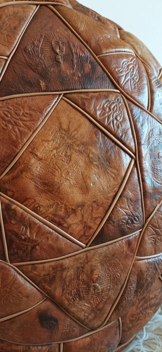 Schitterende set poefs/voetsteunen uit de jaren 80 in leer met verschillende soorten dessins op het oppervlak.