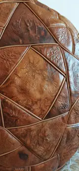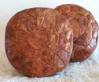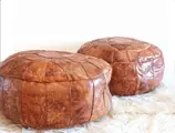 Deze lederen poefs, volledig met de hand gemaakt, zullen een vintage tintje aan uw huis geven.