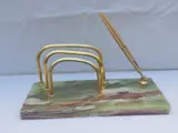 Fijne en elegante postsorteerder van jadegroen marmer met verguld bronzen rand. Art Deco-stijl. Midden SXX. Italië.