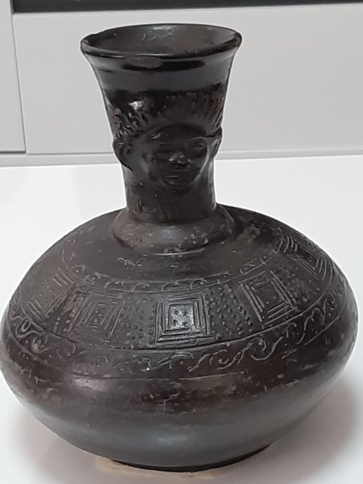 Oude eeuwenoude zwarte kleivaas in uitstekende staat gehouden