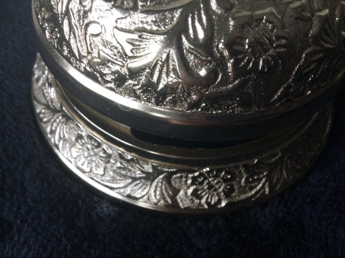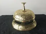 Prachtige zeer fraaie authentieke massieve bewerkte geelkoperen Hotel/Balie Bel, bewerkte met bloemen en bladeren, heeft een zeer mooie klank