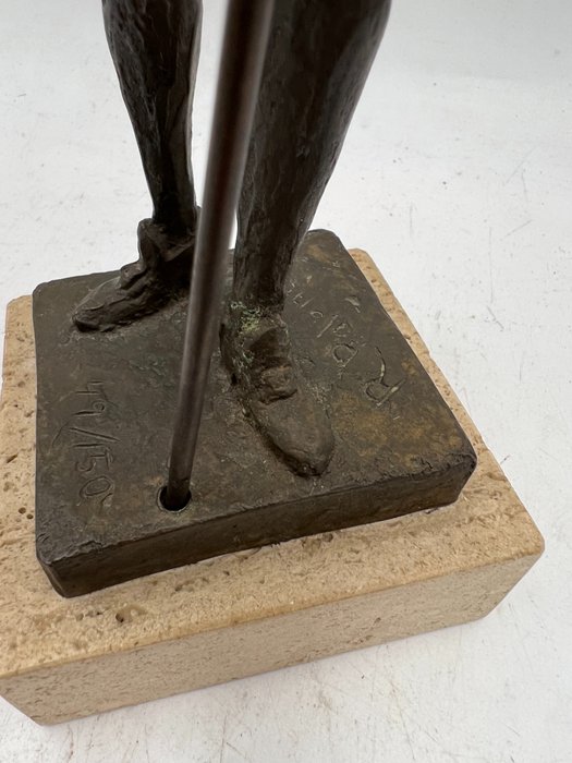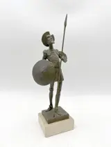 Bronzen beeld voorstellende een soldaat, gesigneerd R. Palencia en genummerd 49/150. Op marmeren sokkel.