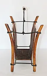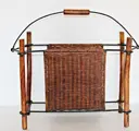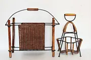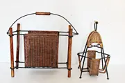 Set van raffia tijdschriftenrek en flessenrek