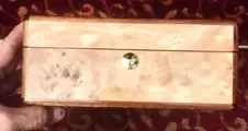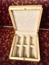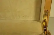 Gouden binnen- en buitenbekleding, crème fluwelen binnenkant, verwijderbare afstandhouders. Gebruikte staat, zie foto's.