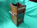 De opgegeven breedte is 18 cm, met ingeklapte dragers voor de pijpen. Opbergplaats voor 6 pijpen. NB, kleine reparaie aan ophangpunt, zie ook de detailfoto.